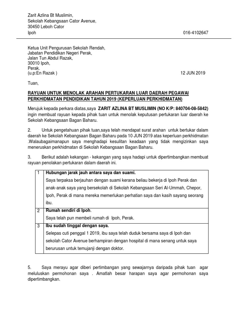 Contoh Surat Rayuan An Pertukaran Mengikut Suami Pdf